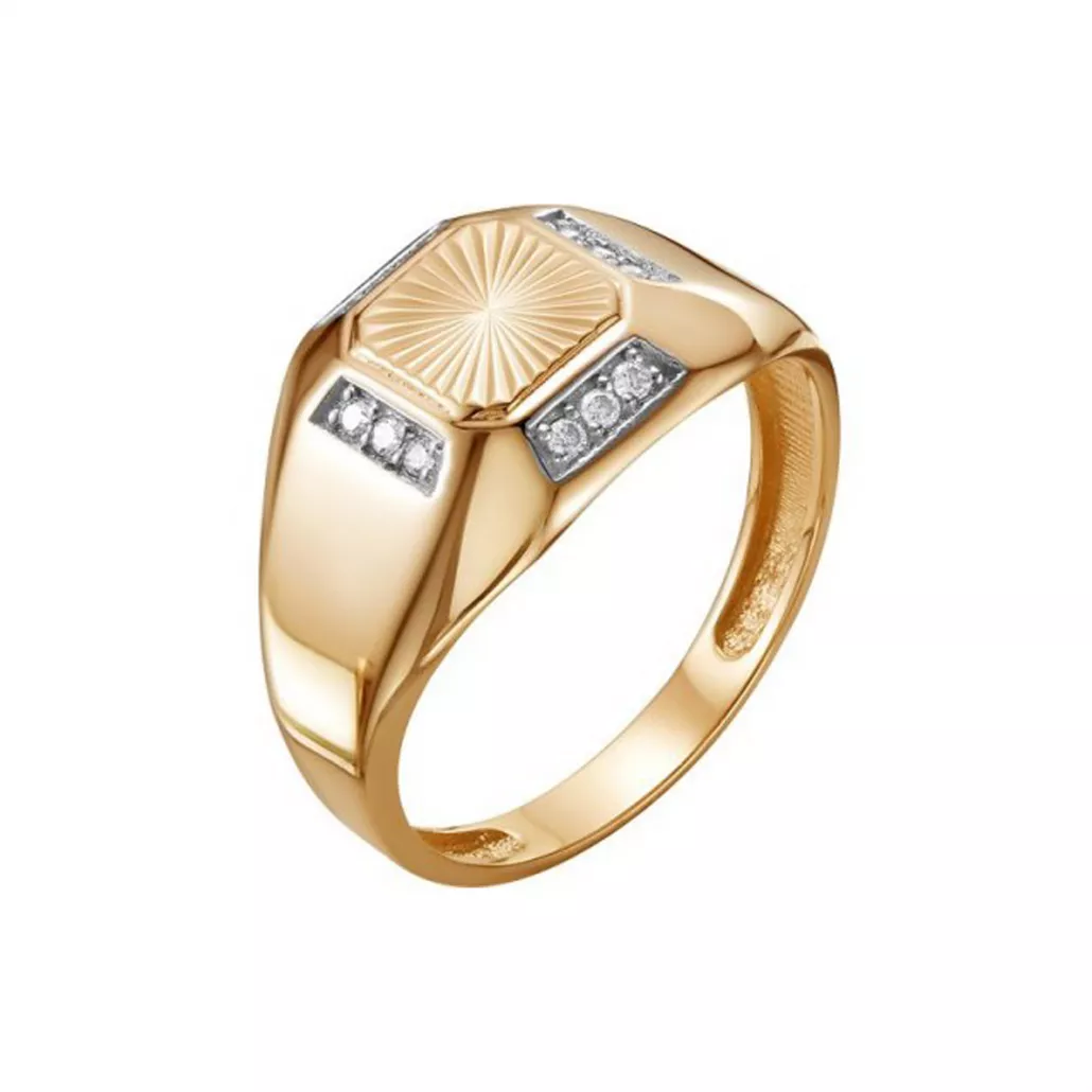 Кольцо-печатка с фианитом из золота