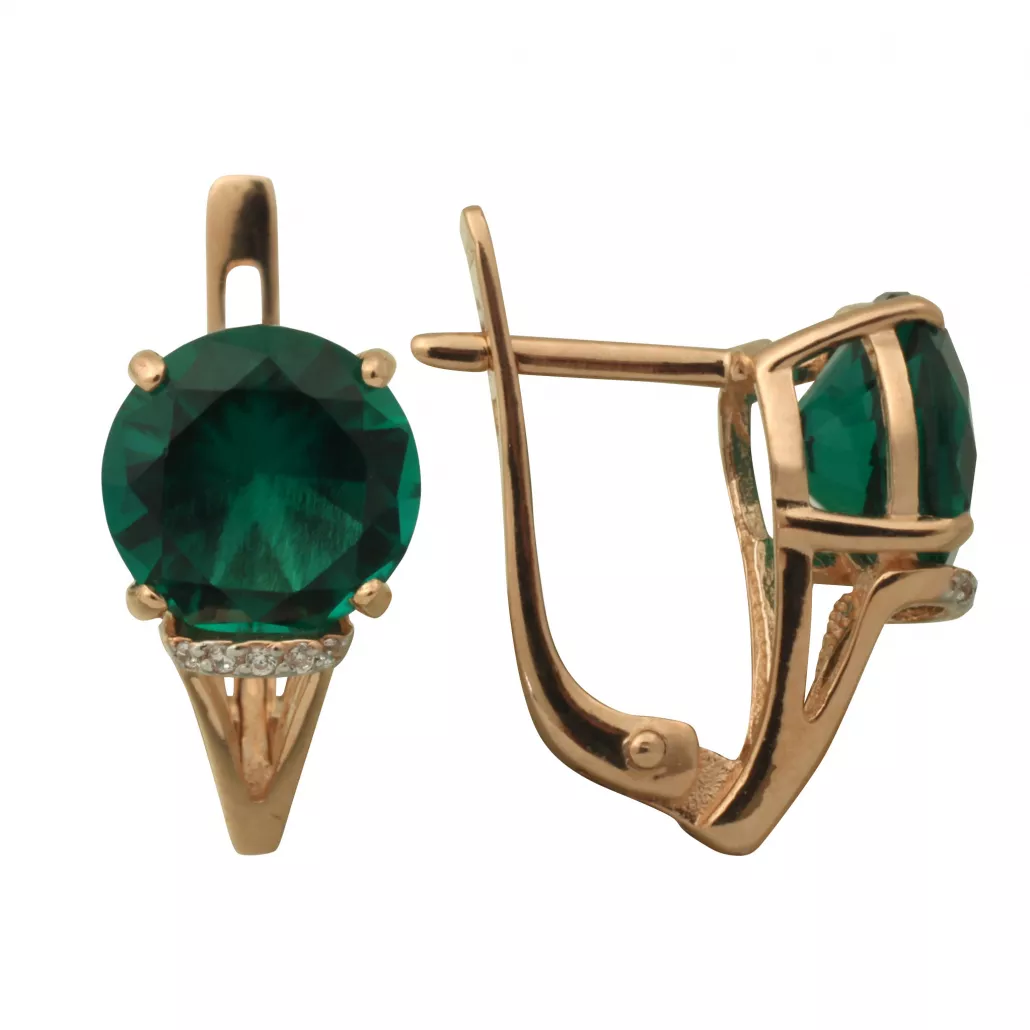 - Серьги с изумрудом и фианитом из золота