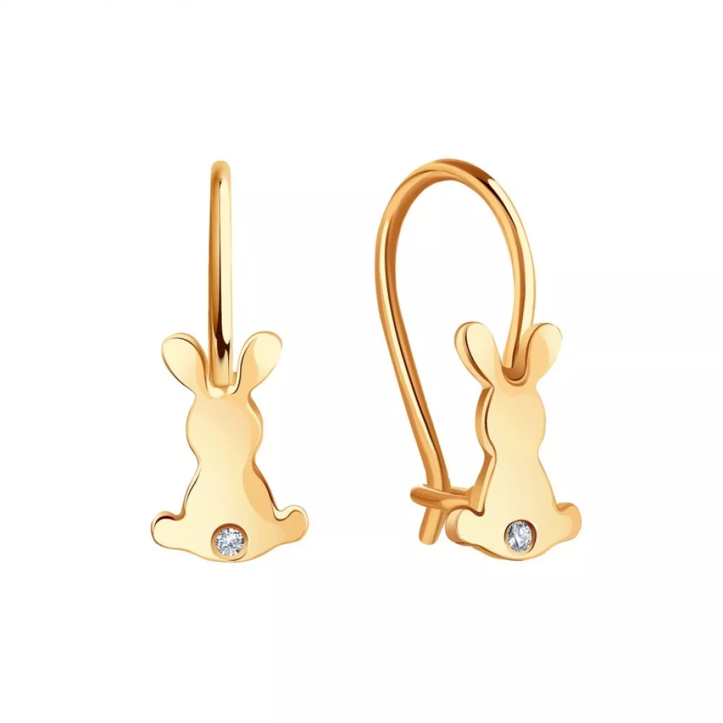 Серьги детские с фианитом из золота